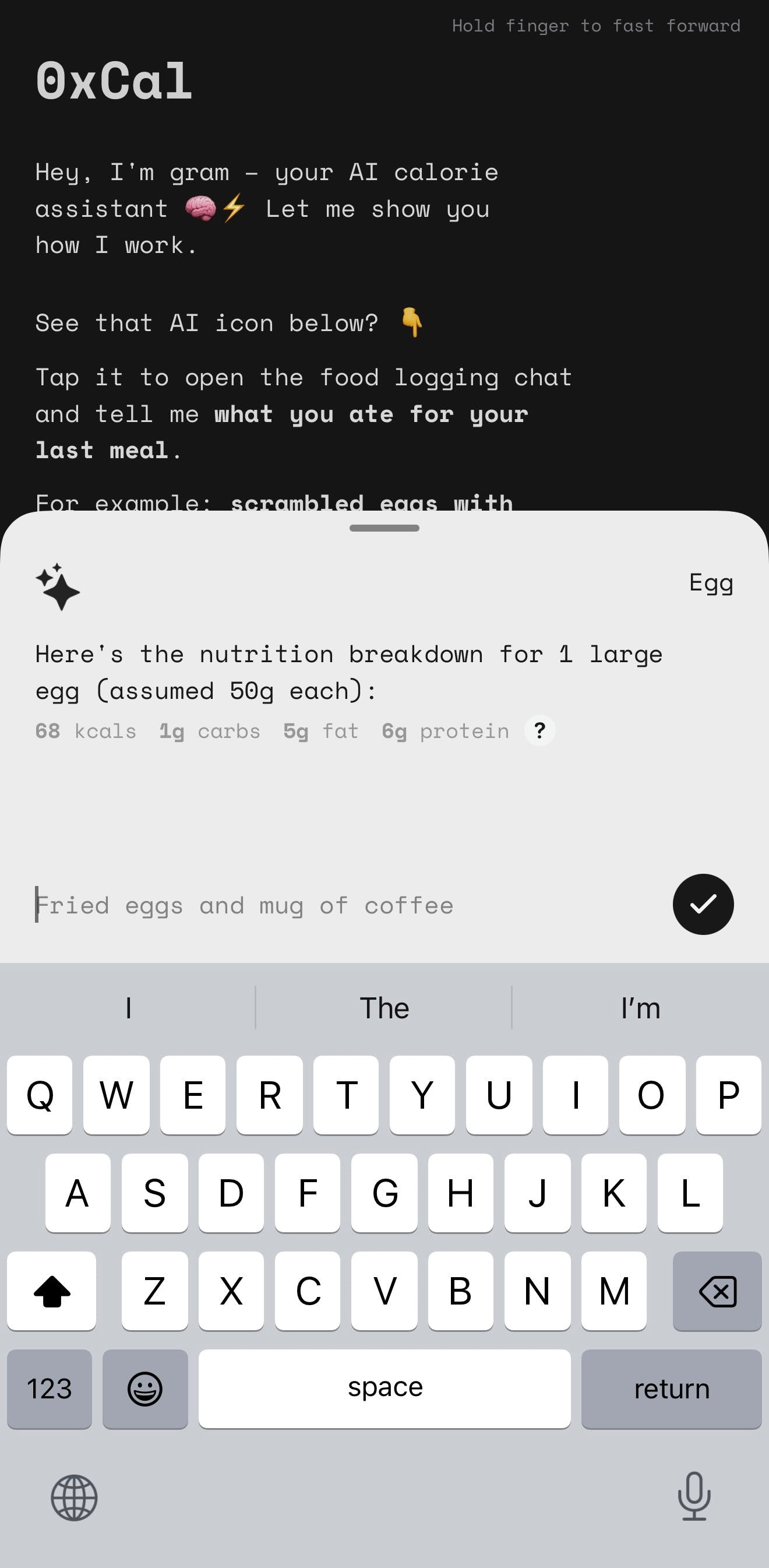 If you've ever abandoned a calorie tracker because it felt like homework, I'd love for you to try 0xCal.