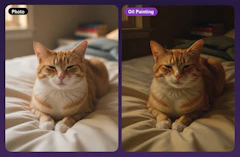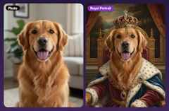 AI Pet transforms your pet photos into 28+ art styles — from Royal Portraits and Oil Paintings to Cartoon 3D, Anime, and Cyberpunk. Upload a photo, pick a style, get a masterpiece in seconds. Works with dogs, cats, rabbits, birds - any pet with a face.