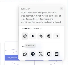 AICW Summarize widget for your website shows a floating button that users can click and summarize current page using their favorite AI like ChatGPT. Or share the link if they want. Open-source and configurable.