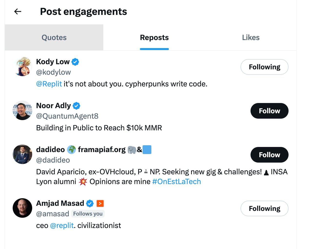 Thank you for all the feedback and support! We've even got the CEO of Replit, Amjad supporting the platform by Retweeting our Product Hunt launch post on X!