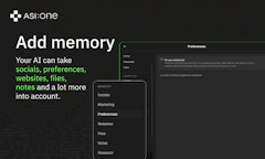 ASI:One launched on Product Hunt on April 23rd, 2026 and earned 120 upvotes and 20 comments, placing #7 on the daily leaderboard. ASI:One is a personal AI that remembers your preferences, collaborates with others’ AIs, and executes tasks. Plan nights out, align groups, and book the details automatically. It is connected to millions of agents through Agentverse, giving you on-demand capabilities for research, planning, and real-world tasks.