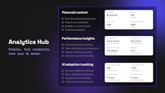 • Tracks delivery speed, AI usage, and cost in real time (Analytics Hub)