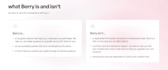 Berry is a tool, not a therapist, not a replacement for human connection, and not something to become dependent on. There's even a time limit on how long you can talk per session, by design.