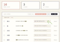 But there are more: - You can save vocabulary while listening to your Word Bank to review later - You can review and redo the sentences you got wrong to improve the result - You can note your own understanding of the vocabs and print them out in a Chinese character sheets to practice writing in iPad or on paper
