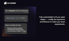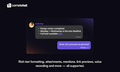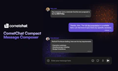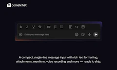 Compact Message Composer by CometChat launched on Product Hunt on April 29th, 2026 and earned 86 upvotes and 1 comments, placing #10 on the daily leaderboard. CometChat's Compact Message Composer, part of the CometChat UI Kits, brings rich text formatting to your chat app - bold, italic, strikethrough, underline, links, bullet points, blockquotes and more. Enabled with a single prop. Comes with a floating toolbar, keyboard shortcuts, and full control over how messages are sent. Drop it into any framework and ship a richer chat experience in minutes.