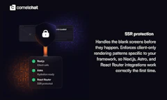 Add fully functional chat to your React app using AI agent skills. Drop in a skill file and your agent handles the full integration: installation, environment setup, SSR-safe rendering, and the correct init and login flow. One file per framework. Works seamlessly with Cursor, Kiro, VS Code Copilot, Claude, and Codex. Go from zero to a working chat in minutes, built on CometChat's proven foundation and ready for real projects from day one.