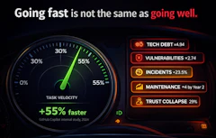 Team adopts AI coding tools. Velocity goes up. Six months later: more incidents, a codebase nobody fully understands, and one senior dev burning out trying to review a tripled queue of AI-generated PRs that all look clean and aren't.