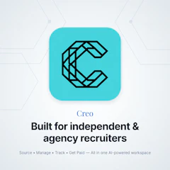Creo is the first all-in-one recruiting OS for independent and agency recruiters. Source candidates, manage clients, launch outreach, and track placements in one workspace, not 6+ disconnected tools. AI scores candidates, writes client submittals, and enhances call notes. Chrome extension saves profiles from LinkedIn with one click. Native trades mode with cert tracking and pay packages. Your data stays private.