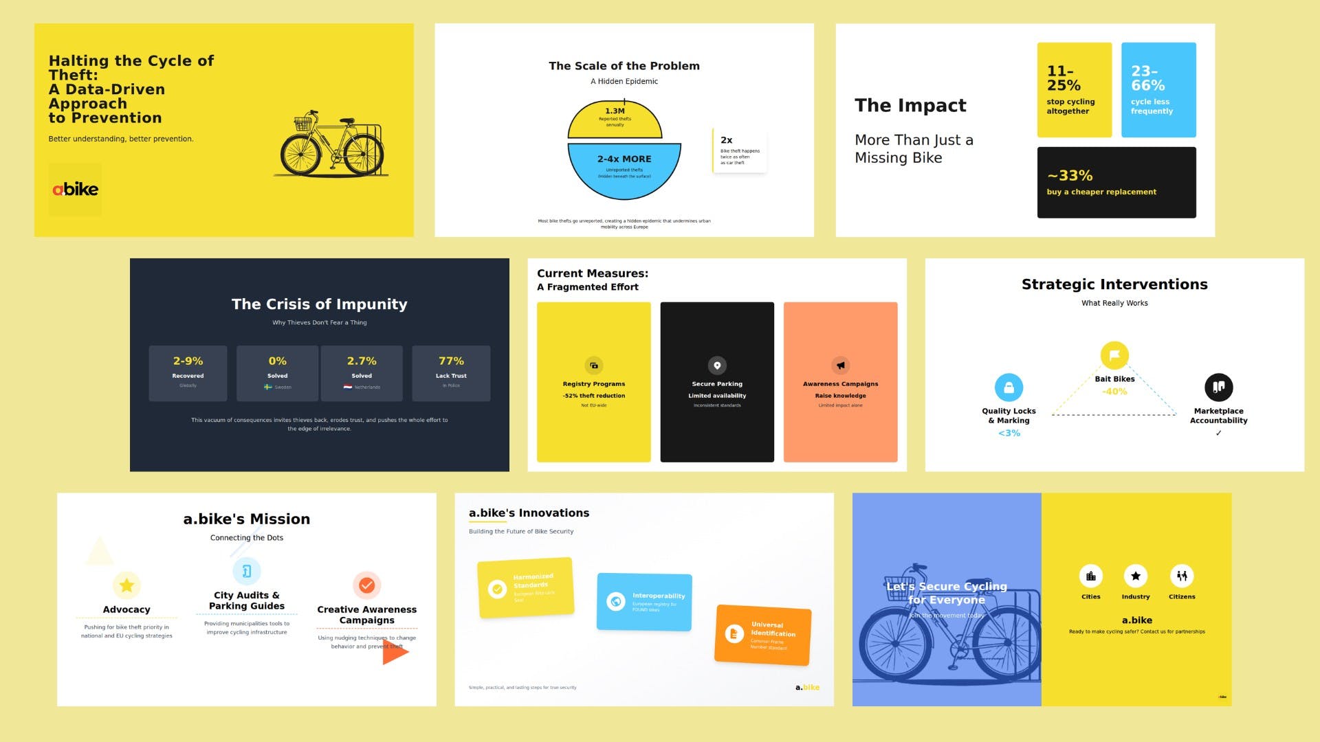 Wild idea : minimalist 12 slide presentation on "Bike theft: the most underrated obstacle to increase cycling uptake."