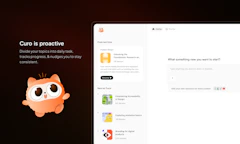 Curo was submitted on Product Hunt and earned 17 upvotes and 3 comments, placing #53 on the daily leaderboard. Curo is your proactive AI-powered Learning Companion - built for curious learners who're tired of drowning in tabs, half-finished articles, courses, and slow progress. It searches for the best resources, curates content the way you understand best and creates personalized plans. Break it into daily tasks. Teaches you interactively on a live whiteboard when you need it most. When you're stuck, Curo helps. When you slow down, Curo nudges. When you're done, Curo moves you forward.