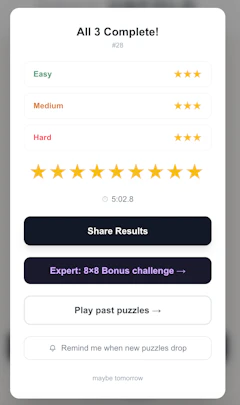 It hit the front page of Hacker News last month and people kept coming back, so I added an Expert mode (8x8, 4 folds, timed) with a daily leaderboard where players compete for the fastest solve.