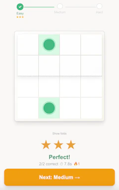A piece of paper is folded along dashed lines and a hole is punched through, your job is to predict where all the holes appear when the paper is unfolded. Three puzzles every day (easy, medium, hard) plus a timed Expert mode with a global leaderboard. Free, no signup, plays in your browser.