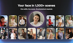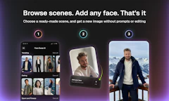 The app is simple: we have a big library of scenes – memes, fashion shots, travel, office, all sorts of stuff – and you put your face into them. One photo, one tap, done.