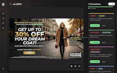 Gard automatically finds and corrects typos in image files such as graphics, ads, banners, or any image containing text. Feel confident when delivering image assets to clients.