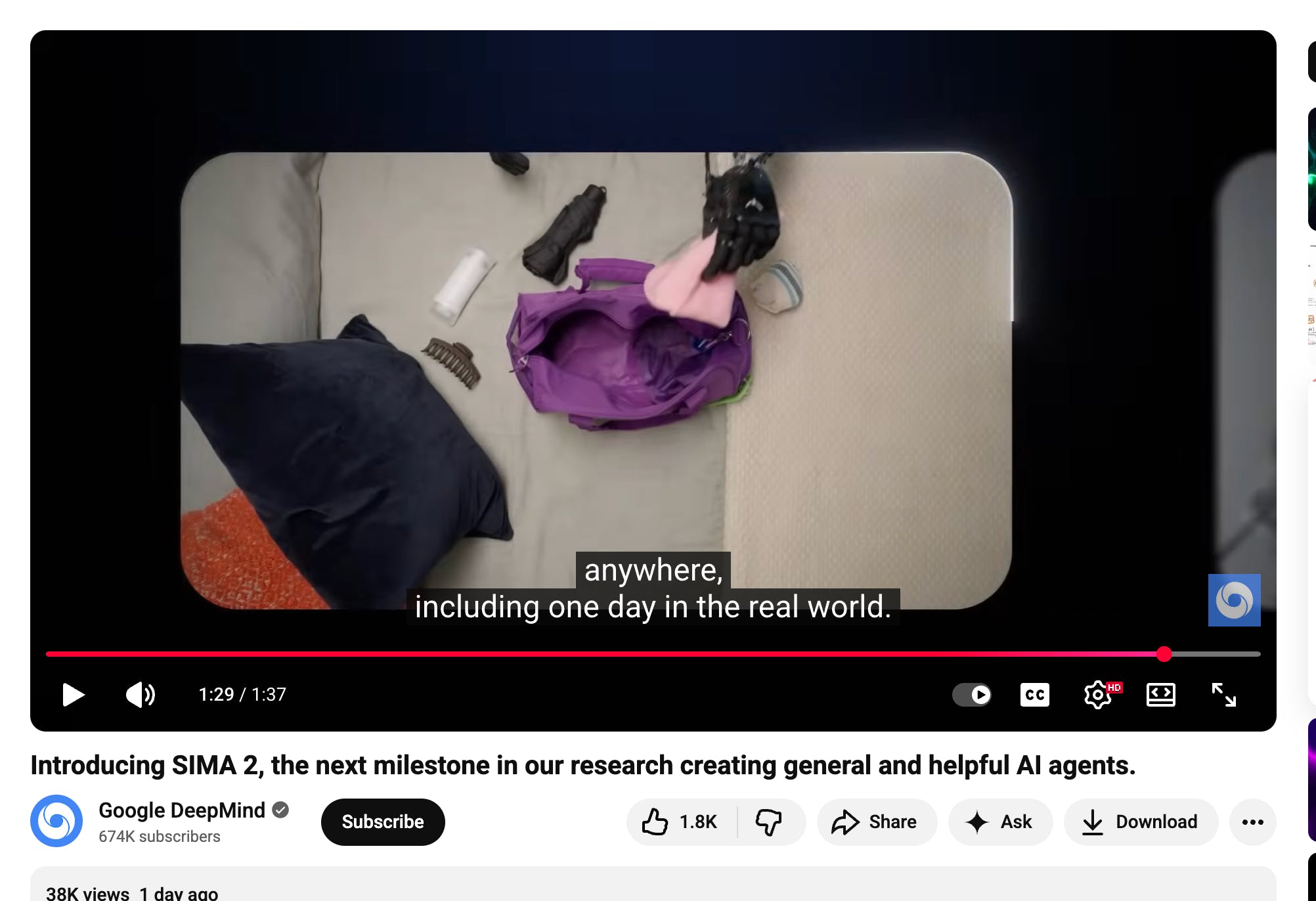 SIMA 2 can now carry out detailed instructions — even in worlds it's never seen before (like those generated by Genie 3).