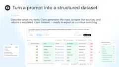 Today, we're opening the first public module of Claro: Research Agents. 10+ task-specific agents run inside a native table - enrichment, PDF extraction, URL scraping, classification, location lists, dedupe. Every cell comes back with a confidence score, citations, and ranked sources. Built validation-first, not a chat wrapper. 200 free credits on signup, no card.