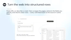 📋 Find your perfect list — describe ideal prospects, suppliers, or partners, get an enriched dataset 📍 Build a location list — draw an area on a map, generate POIs with attributes 📄 Capture tables from PDFs — pull tables from reports, pick which to keep 📑 Turn documents into structured data — extract fields across hundreds of docs at once 🌐 Scrape data from URLs — turn a list of links into structured rows 📊 Analyse CSV — upload a spreadsheet, validate and enrich it 🔀 Merge & Map — dedupe and reconcile records across two files and more.