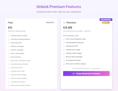 We have a generous "Always Free" plan for everyone starting out. For those who want the full experience (PDFs, Video Messages, AI tools and more frills), we offer a simple one-time payment per board - no recurring subscriptions to forget about!
