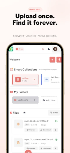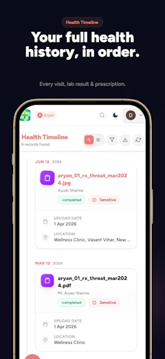 We've all watched friends and family scramble through stacks of medical reports, prescriptions, and lab results during health scares - especially in India where handwritten notes are often illegible scribbles. People feel lost, anxious, and clueless about their conditions (or their kids' or parents'), needing a trusted companion to explain terms, organize files, and answer day-to-day questions without exploiting their data.
