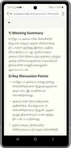 Minom is an AI-powered meeting assistant designed specifically for multilingual Indian teams. It records meetings, converts speech to text, generates structured summaries, and extracts action items automatically. Unlike many global tools built mainly for English, Minom supports Indian languages and mixed-language conversations, making it ideal for real-world business meetings across India. It helps teams save time, stay organized, and never miss key decisions.
