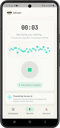 Minom was built to solve a very real challenge we kept seeing across teams — meetings happening in mixed languages, where important points were missed or notes became incomplete. Most existing tools work best in English, but real-world conversations, especially in India, are often multilingual.