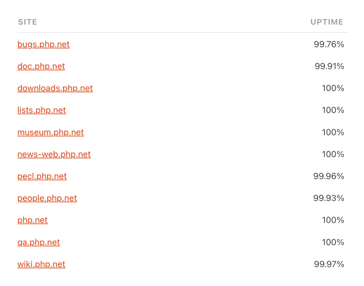 Great product! Been using it for php.net – it's a pleasure to get the monthly uptime recaps: