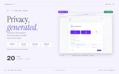 • Generates Privacy Policy, Support & Marketing Page with a few questions about your brand.