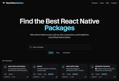 Building React Native apps shouldn't drain your energy. React Native Solutions is a decision engine featuring: • 0-100 Health Scores for 2,190+ packages • Side-by-side package comparisons with AI analysis • AI Agent Skills Marketplace for Cursor & Windsurf Stop guessing, stay in your flow state, and let us handle the research.