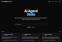 AI Agent Skills Marketplace: If you use Cursor, Windsurf, or Claude Code, we have a curated directory of React Native & Expo system prompts and rules. One-click install and you are ready to code.