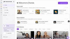 Shanda Studio (V3) was submitted on Product Hunt and earned 3 upvotes and 1 comments, placing #160 on the daily leaderboard. Podcasting is broken for creators. 75% quit by episode 3 -- not because they lack ideas, but because the tools are fragmented and the workflow is brutal. Shanda is the all-in-one studio that collapses Record → Edit → Publish → Analytics into one place. AI handles transcription, audio enhancement, and show notes. Templates for Guided Meditation, Fireside Chat, Thought Pieces, and more show beginners the finish line before they start. Canva made design accessible. We're doing it for audio.