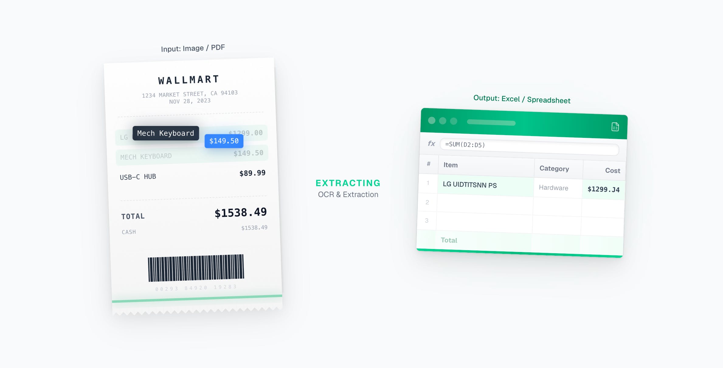 🔍 Precision Extraction: We don't just grab the total. We extract specific line items with near 100% accuracy.