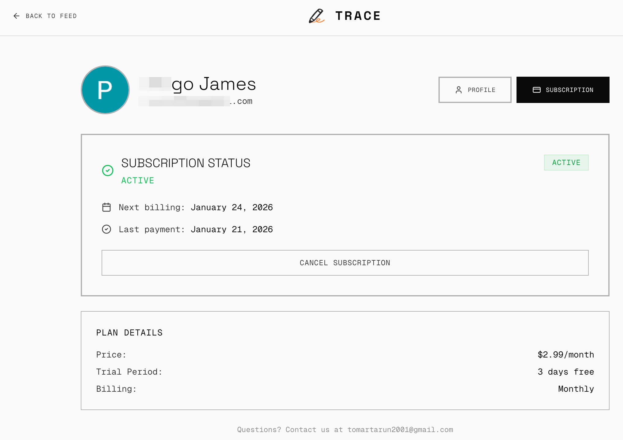 - If you want to see your personal Trace in action, you can try it for 3 days at no charge