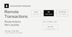 Universal Gas Framework (UGF) launched on Product Hunt on April 24th, 2026 and earned 73 upvotes and 0 comments, placing #23 on the daily leaderboard. UGF introduces Remote Transactions, where source-chain value becomes destination-chain action. Built for AI agents, dApps, wallets, and cross-chain apps, it avoids bridging liquidity, destination-chain prefunding, and ERC-4337/paymaster complexity through a signer-authenticated Value-to-Action API.