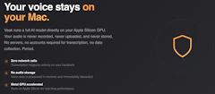 Press Option+V, speak, and your words appear in whatever app has focus. Everything runs on your Mac. Nothing is ever sent to the cloud. Fully on-device dictation app for your mac.