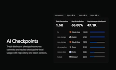 AI Checkpoints — commit-level attribution. Which agent, how many tokens, what percentage was AI