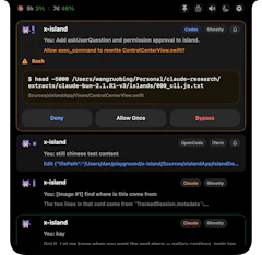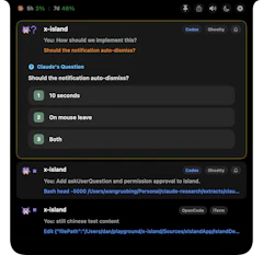 xIsland turns the notch into mission control for Claude Code, Codex, and Gemini CLI, etc. Never miss a permission prompt, see every session at a glance, answer questions, approve requests, and jump back to the right terminal panel in one click. Local-first, no cloud, no account.