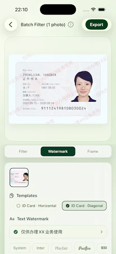BatchMark is a powerful batch watermark app built for creators who care about speed, privacy, and quality. → Add text or logo watermarks to 100+ photos in one tap → Export in full resolution with zero quality loss → 100% on-device processing — no uploads, no tracking, no cloud → Works seamlessly across iPhone, iPad, and Apple Silicon Macs Perfect for photographers, content creators, and anyone sharing images online.