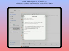 BrieFolio was submitted on Product Hunt and earned 2 upvotes and 1 comments, placing #156 on the daily leaderboard. BrieFolio is a privacy-first document intelligence app for iPhone, iPad, and Mac. Drop in any document — contract, invoice, meeting notes, research paper, or essay — and on-device AI extracts structured insights instantly Professionals reviewing contracts and legal documents Teams turning meeting notes into action items instantly Researchers extracting key findings from papers Finance and ops teams processing invoices Students and academics analyzing essays and assignments