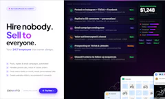 Devaito launched on Product Hunt on April 21st, 2026 and earned 103 upvotes and 15 comments, placing #7 on the daily leaderboard. Describe your business and Devaito launches the essentials for you: website, store, mobile app, SEO, blog, social media, customer support, and sales automation. Unlike traditional site builders, Devaito doesn’t stop at setup. AI agents keep working behind the scenes to help you attract customers, answer questions, create content, and scale without adding more tools.