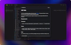 • Inline diff viewer, Git actions, Markdown preview