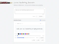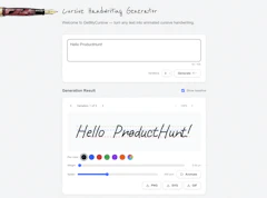 GetMyCursive was submitted on Product Hunt and earned 1 upvotes and 0 comments, placing #151 on the daily leaderboard. Generate realistic animated cursive handwriting from any text — smooth pen strokes, instant preview.