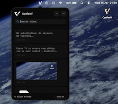 OptionV launched on Product Hunt on April 20th, 2026 and earned 64 upvotes and 5 comments, placing #57 on the daily leaderboard. The fastest clipboard manager for macOS. Press ⌥V to access everything you've ever copied.