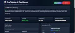 ProfitMate.AI is a smart analytics tool that helps small businesses track revenue, profit, and product margins in real time.Unlike spreadsheets or basic trackers, ProfitMate focuses on clarity. It shows exactly which products make money, which ones don’t, and where your business is leaking profit. With a clean dashboard and actionable insights, you can monitor performance daily, compare products, and make smarter pricing decisions without complexity. Currently in early access,