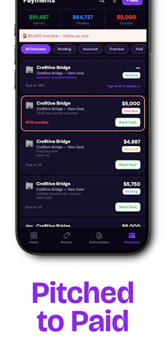 I looked for a tool that understood the creator workflow, one that knew a "deal" means a brief, a shoot date, revisions, a posting deadline, and a payment term. It didn't exist. What existed were generic CRMs, invoice apps with monthly fees, and spreadsheet templates other creators had duct-taped together on YouTube.
