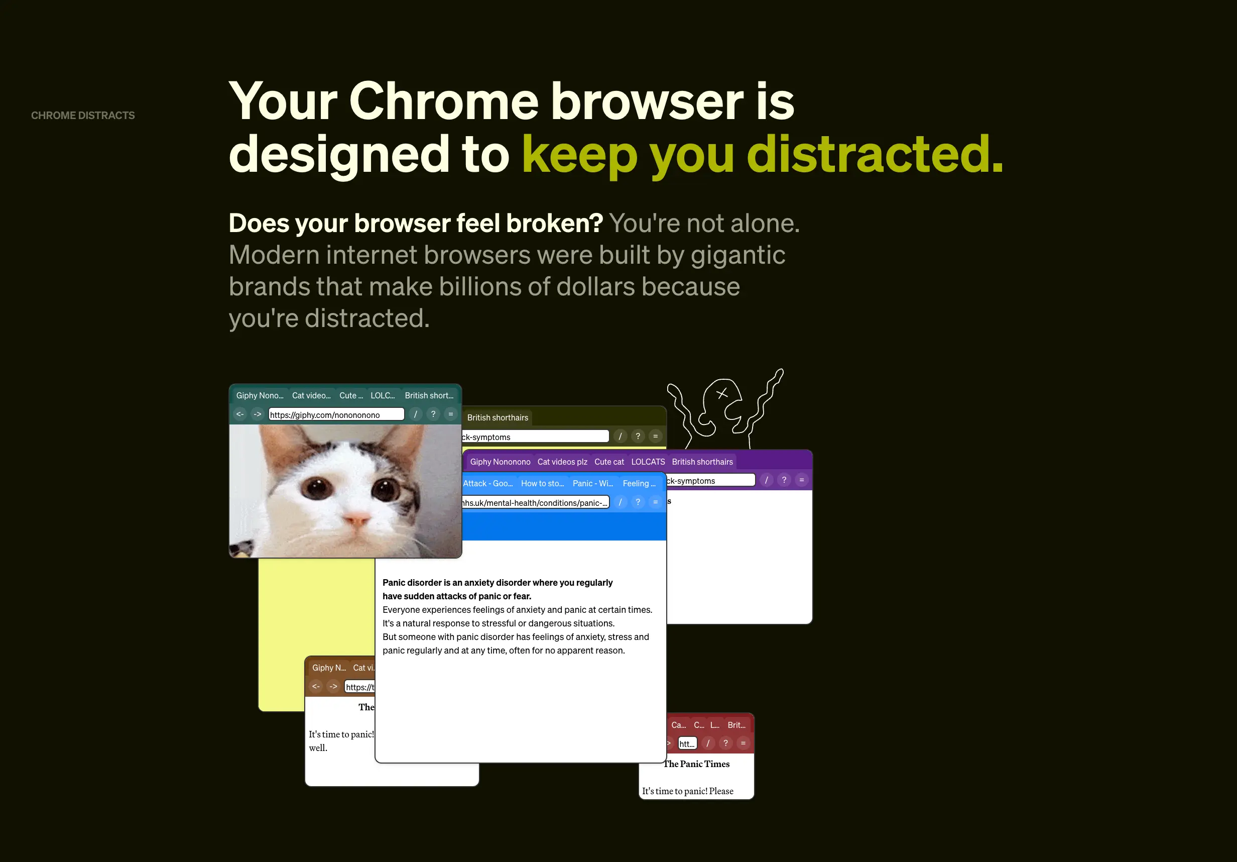 A minimalist browser designed to improve focus, reduce distractions, and organize your work.
