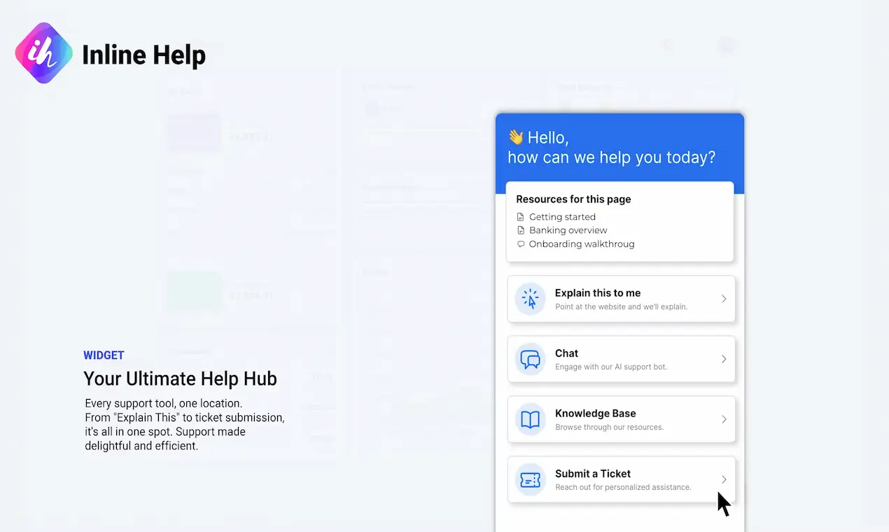 Inline Help is a solution that allows you to answer customer questions before they ask. Seamlessly convert your knowledge base into instant proactive support, elevating user experience and driving efficiency like never before.